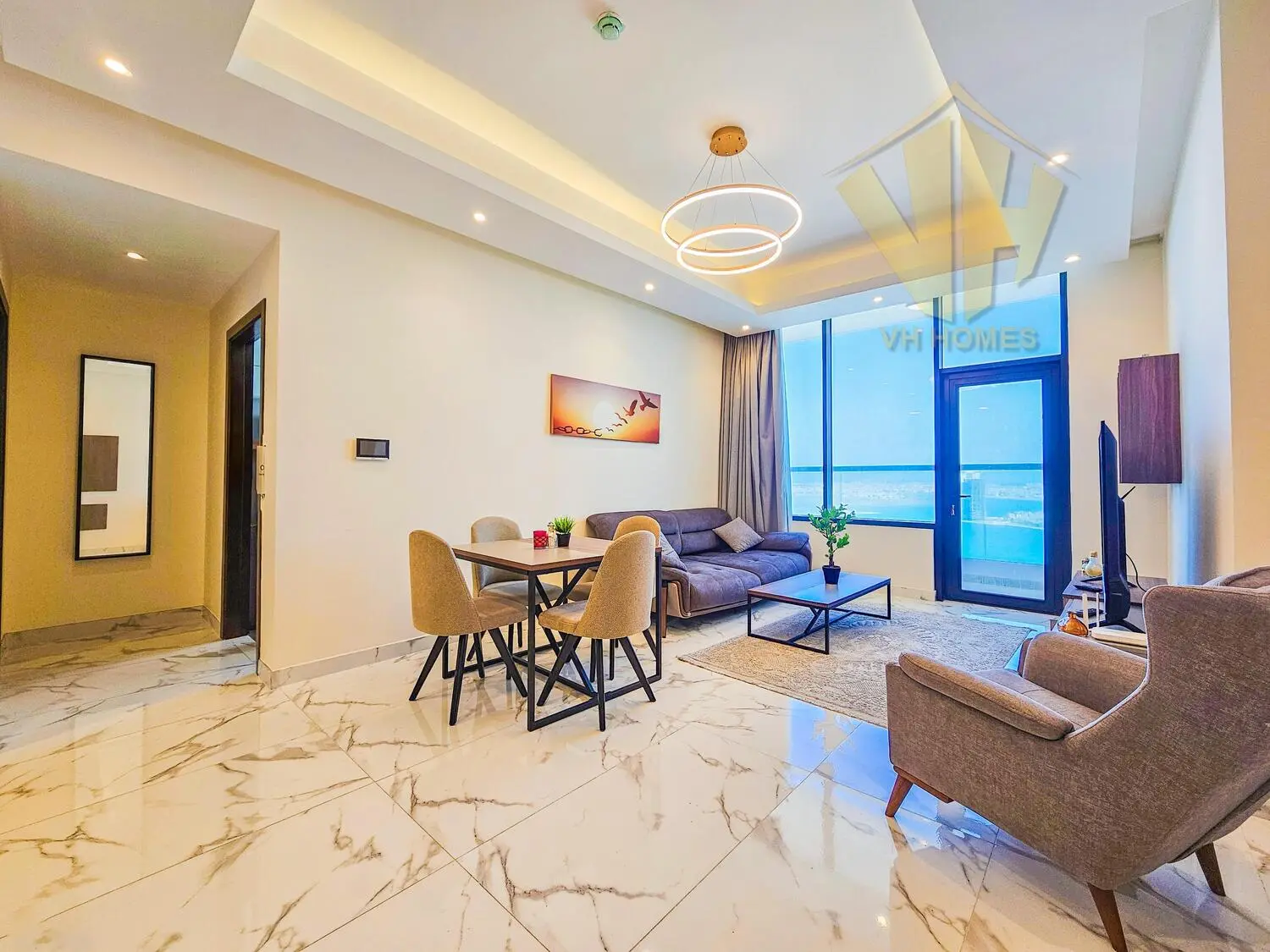 This charming is New sea view apartment tailored only for singles and couples,nestled within a prestigious tower at the heart of Juffair.
