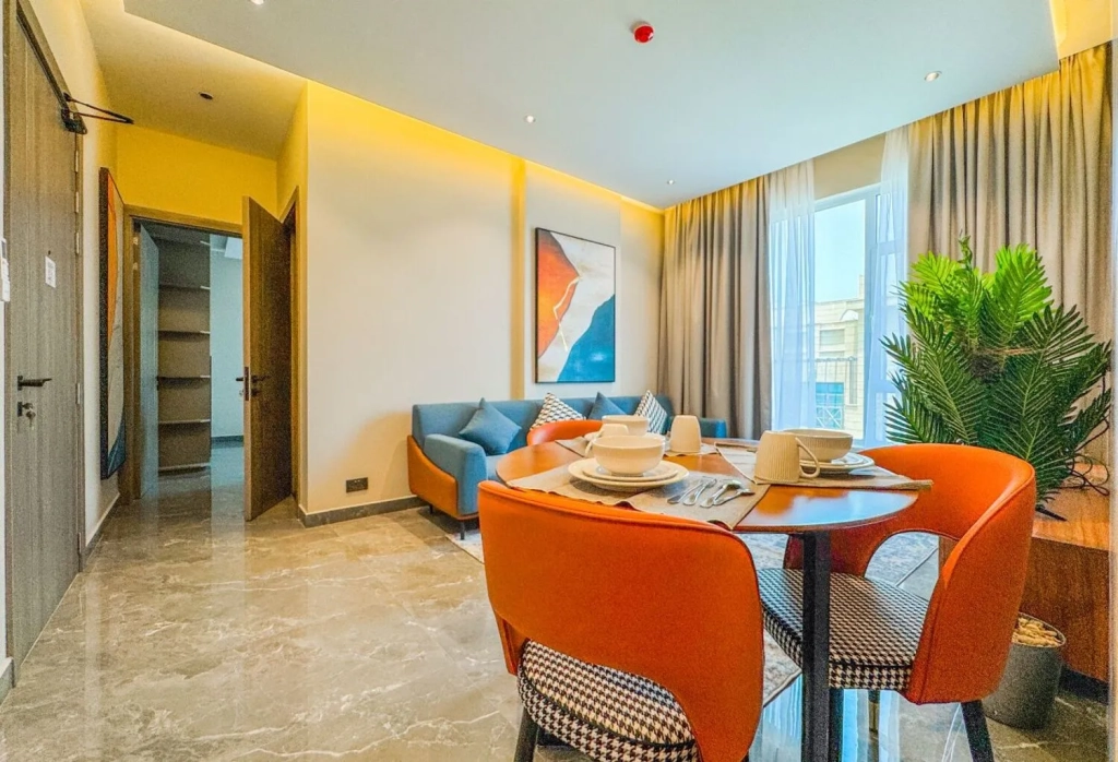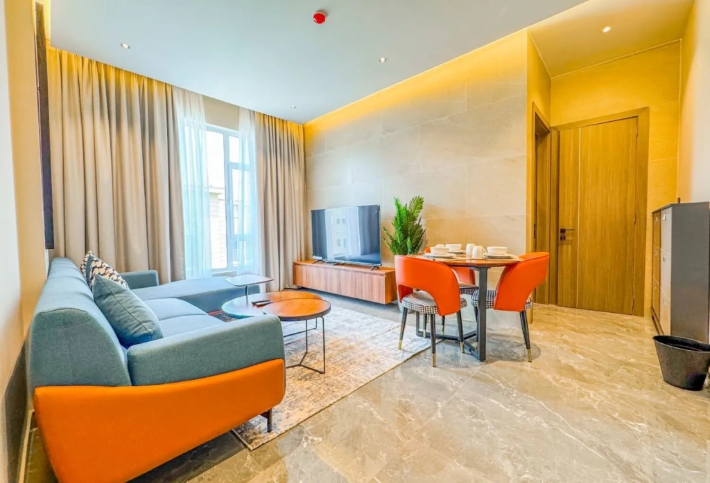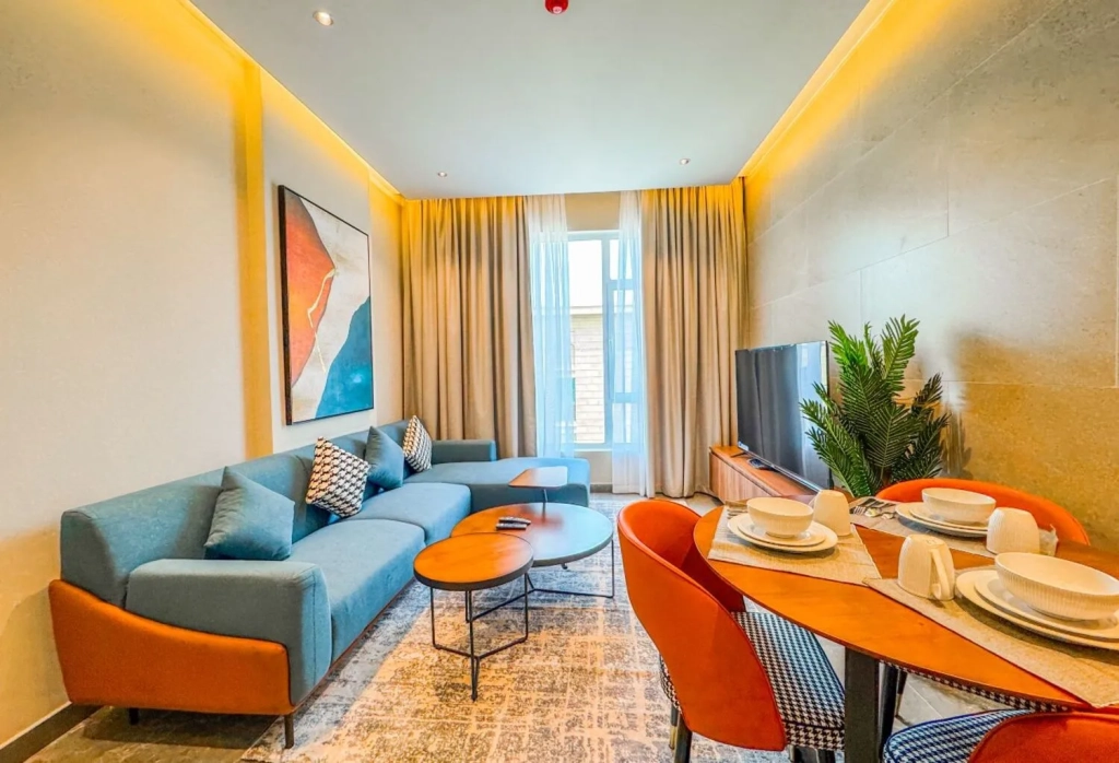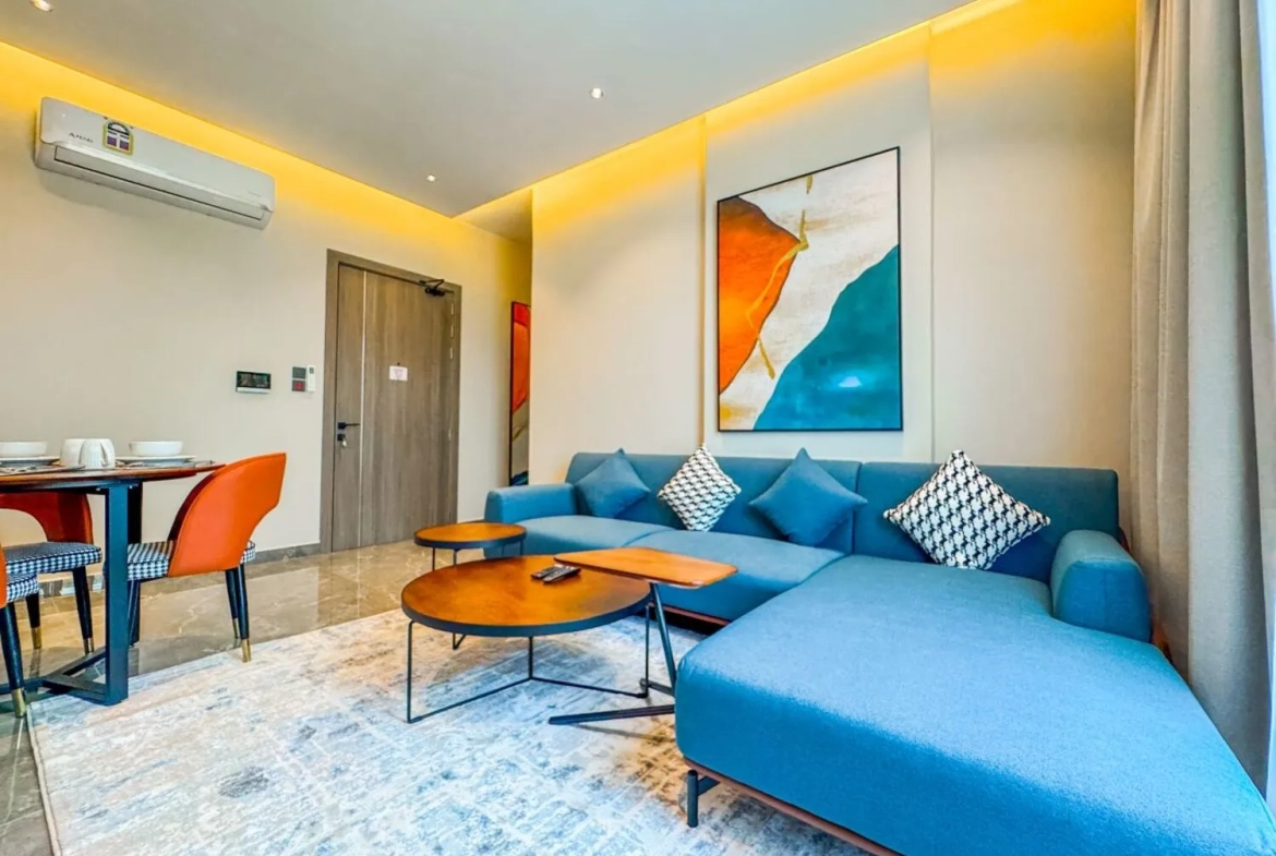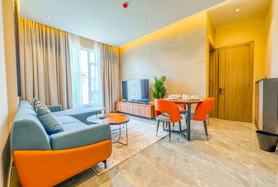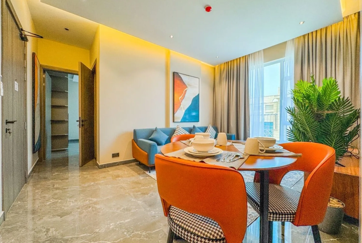 This luxurious modern Spacious bright Brand new 1 bedroom apartment is prestigious tower in Zinj This secure and safe apartment is very spacious with all modern conveniences and offers a luxurious lifestyle for all it’s tenants.