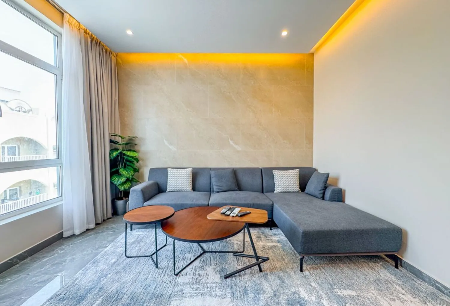This luxurious modern Spacious bright Brand new 1 bedroom apartment is prestigious tower in Zinj This secure and safe apartment is very spacious with all modern conveniences and offers a luxurious lifestyle for all it’s tenants.