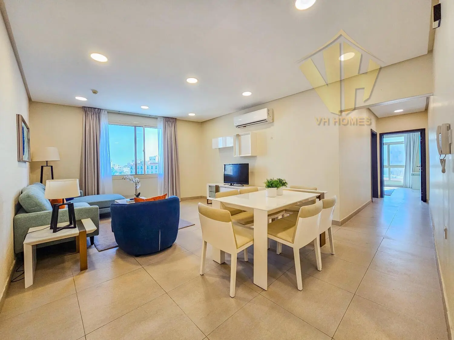 A stunning modern flat in Adiyas lively center, with huge windows and contemporary furnishings. It is ideal for Families only. This apartment has spacious bedroom with attached Tiolet + a guest toilet, a beautiful living room with dining area, a modern fully furnished kitchen.