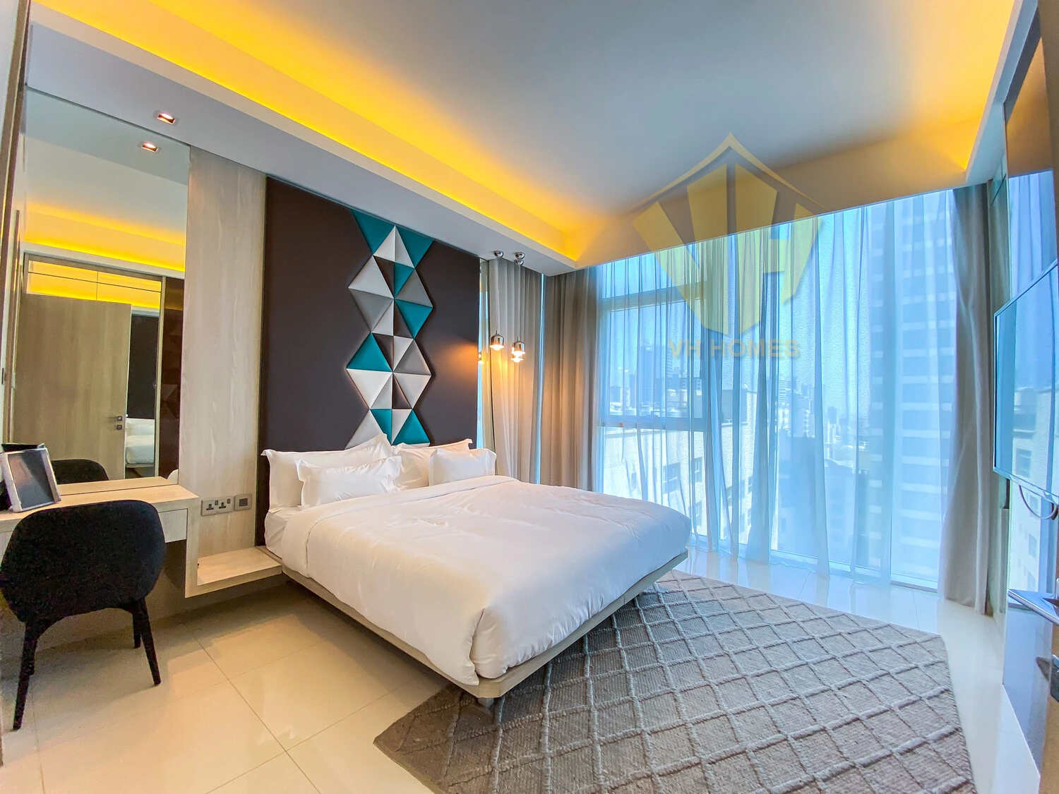 This modern one-bedroom Luxury spacious modernly furnished apartment in a prestigious tower in Juffair.
