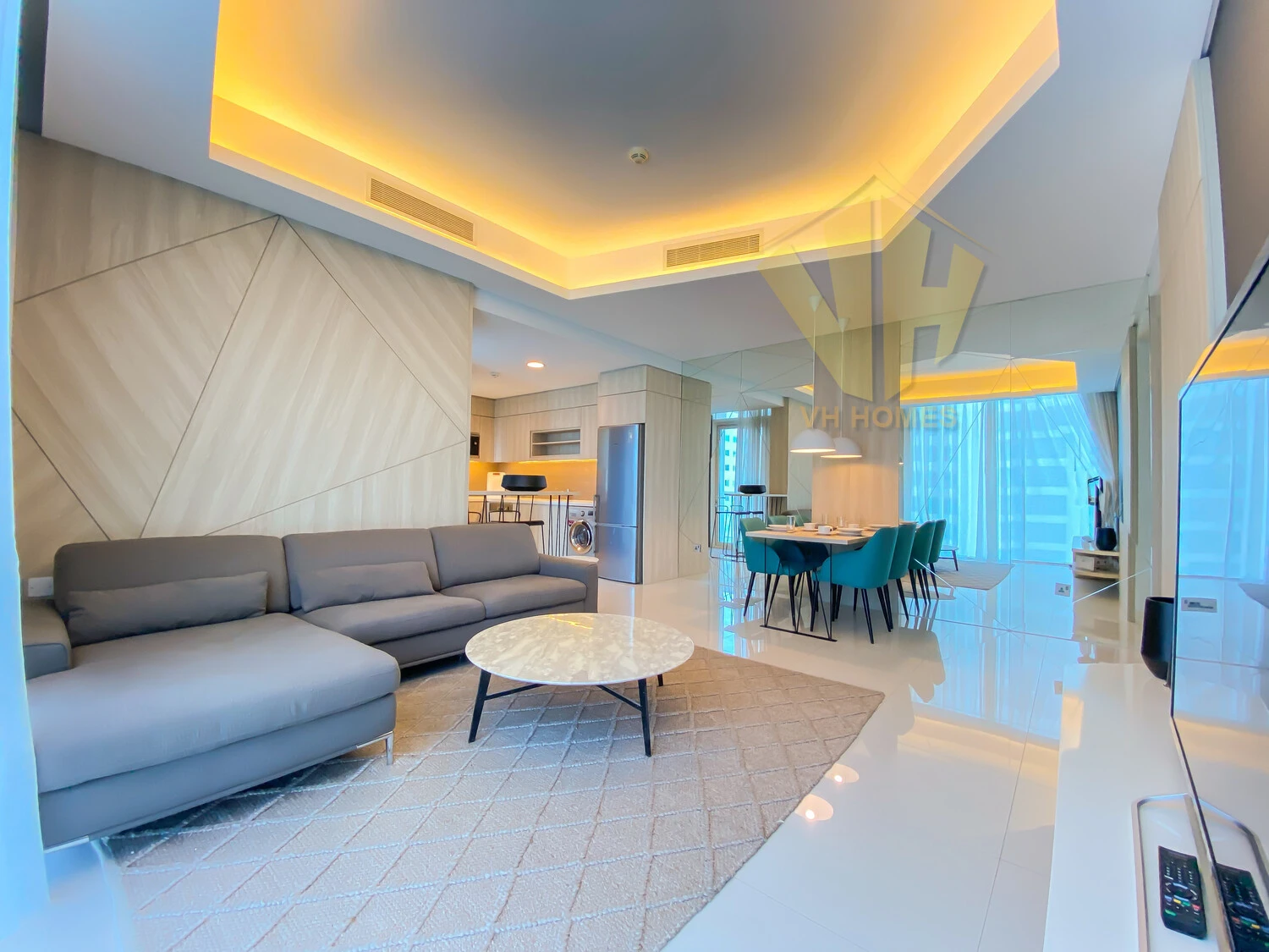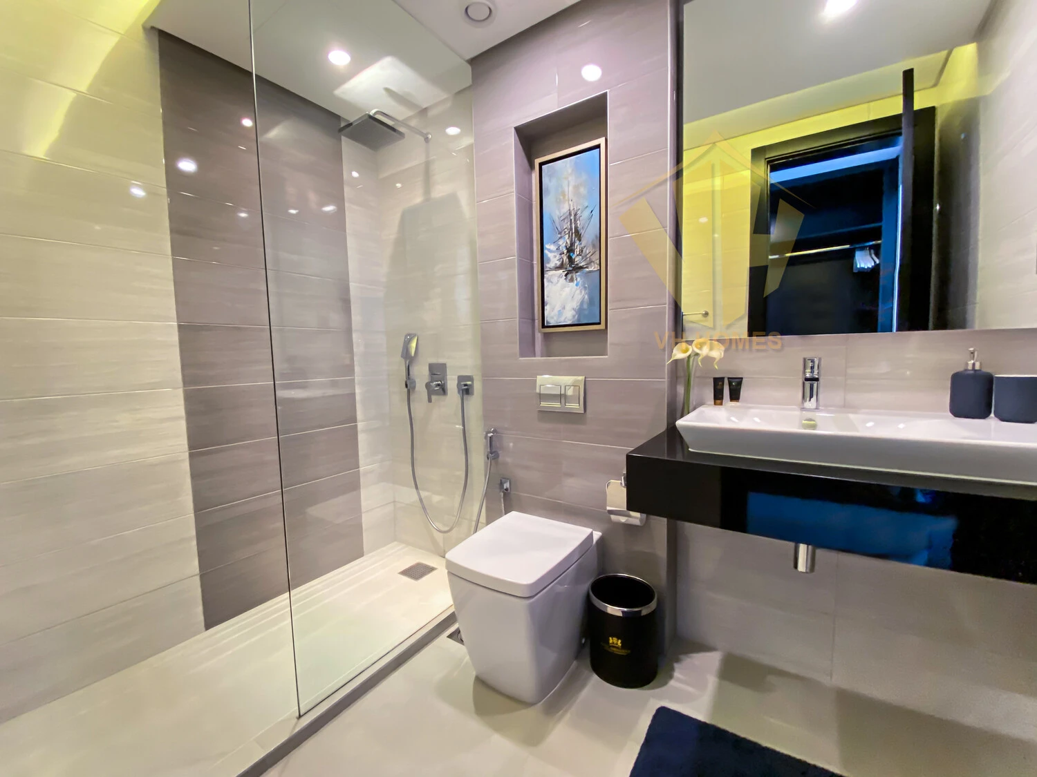 This secure and safe apartment is very spacious with all modern conveniences. . It comprises of 1 bedroom,one toilet, spacious living room with dining area, modern kitchen, Huge windows with lots of natural lights, partial sea view.
