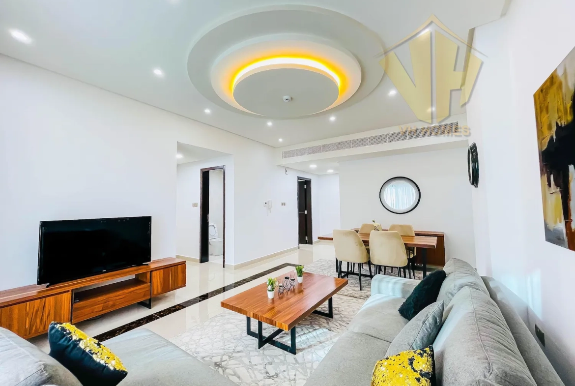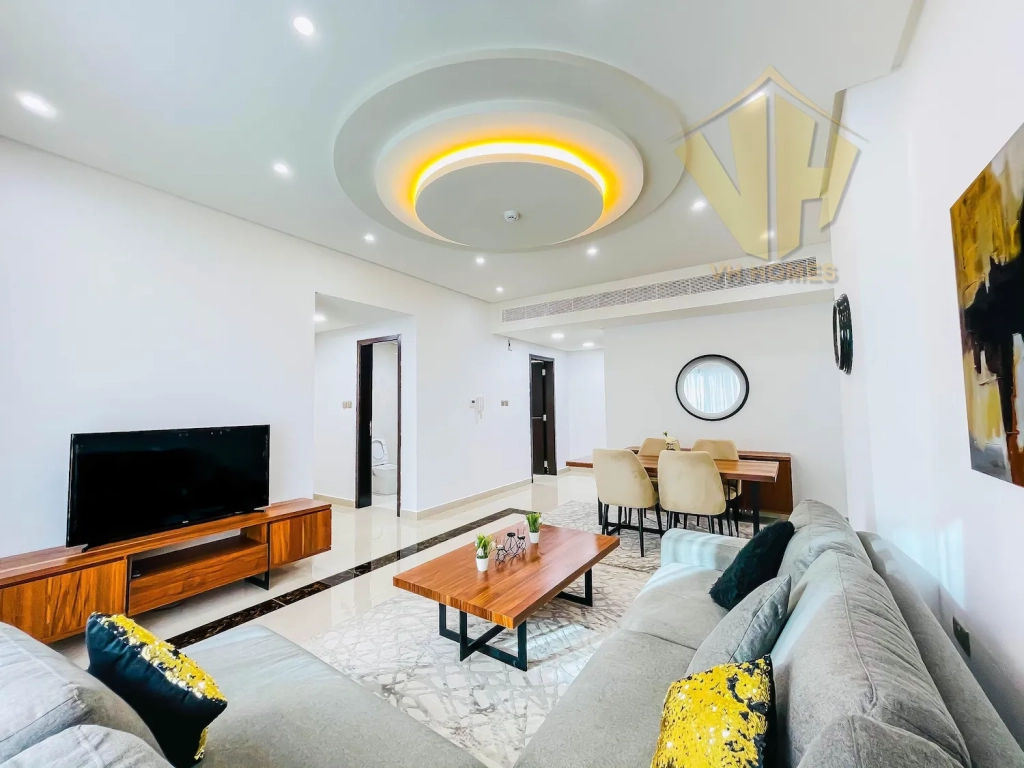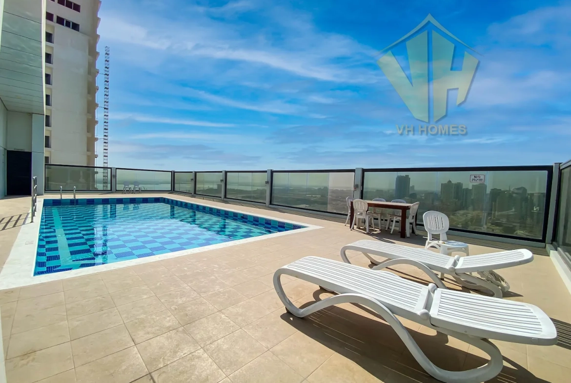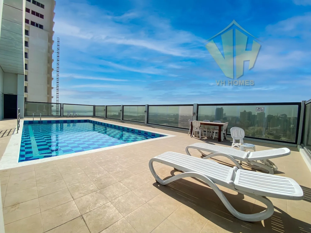 A stunning modern flat in Juffair’s lively center, with huge windows and contemporary furnishings. It is ideal for singles or couples. It has an amazing view from the living room & the balcony. and has one bedroom, a guest toilet, a beautiful living room with dining area, a modern fully furnished kitchen, and a balcony.This Building is situated in a peaceful area of Juffair within easy walking distance to Shopping Malls, Restaurants, Parks, Coffee Shops,Cinema Theatres, ATMS, Fuel Stations, Schools & Hospitals, etc.