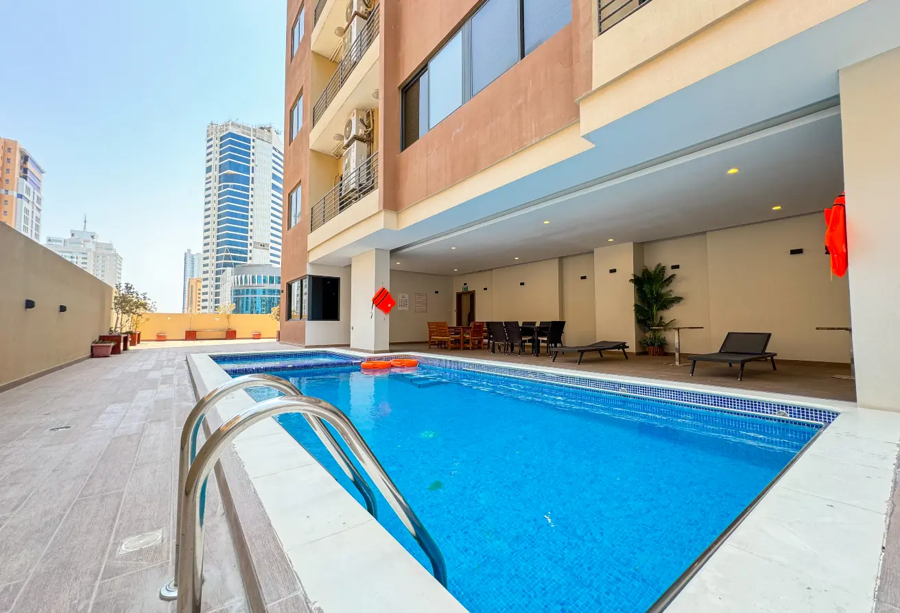 This Building is situated in a peaceful area of Juffair within easy walking distance to Shopping Malls, Restaurants, Parks, Coffee Shops, Cinema Theatres, ATMS, Fuel Stations, Schools & Hospitals, etc.