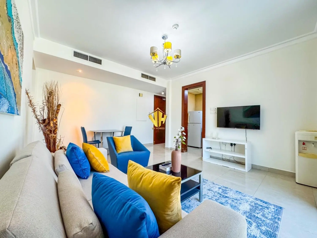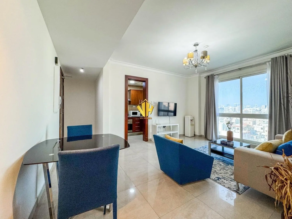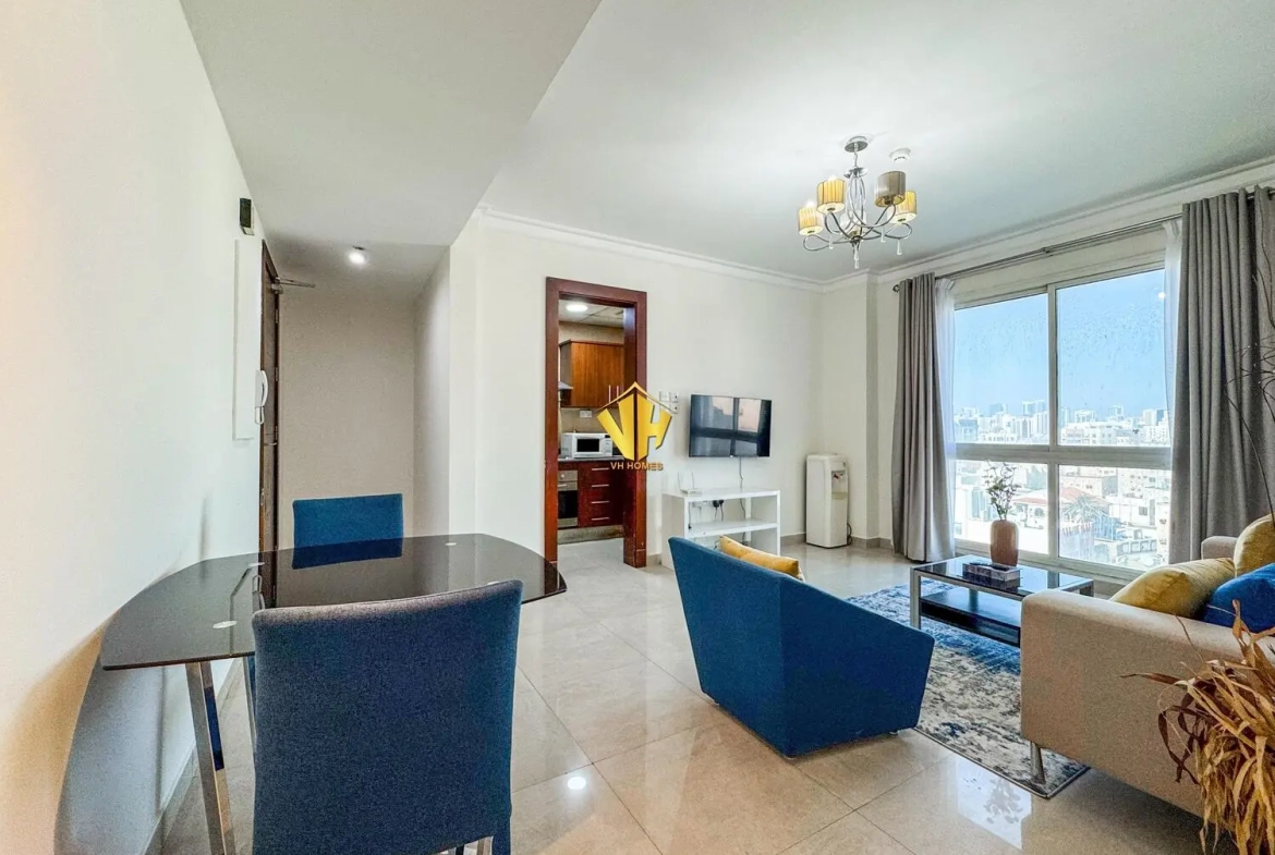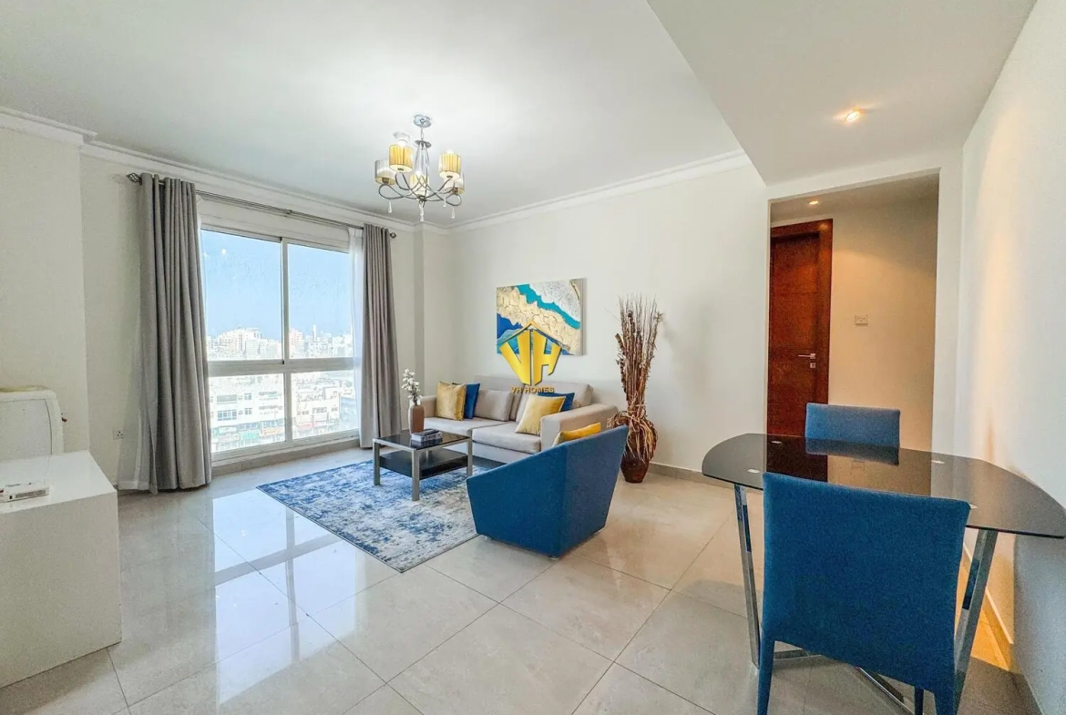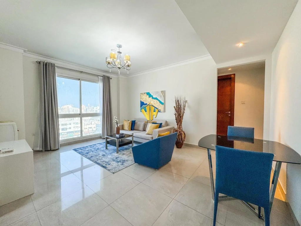 Beautiful and spacious 1 bedroom fully furnished modern apartment in a prestigious tower in Um Al Hassam very close to the British Club.