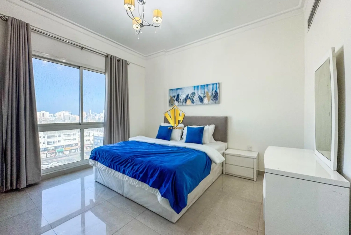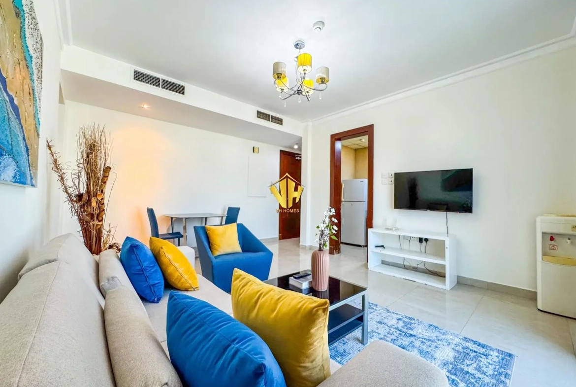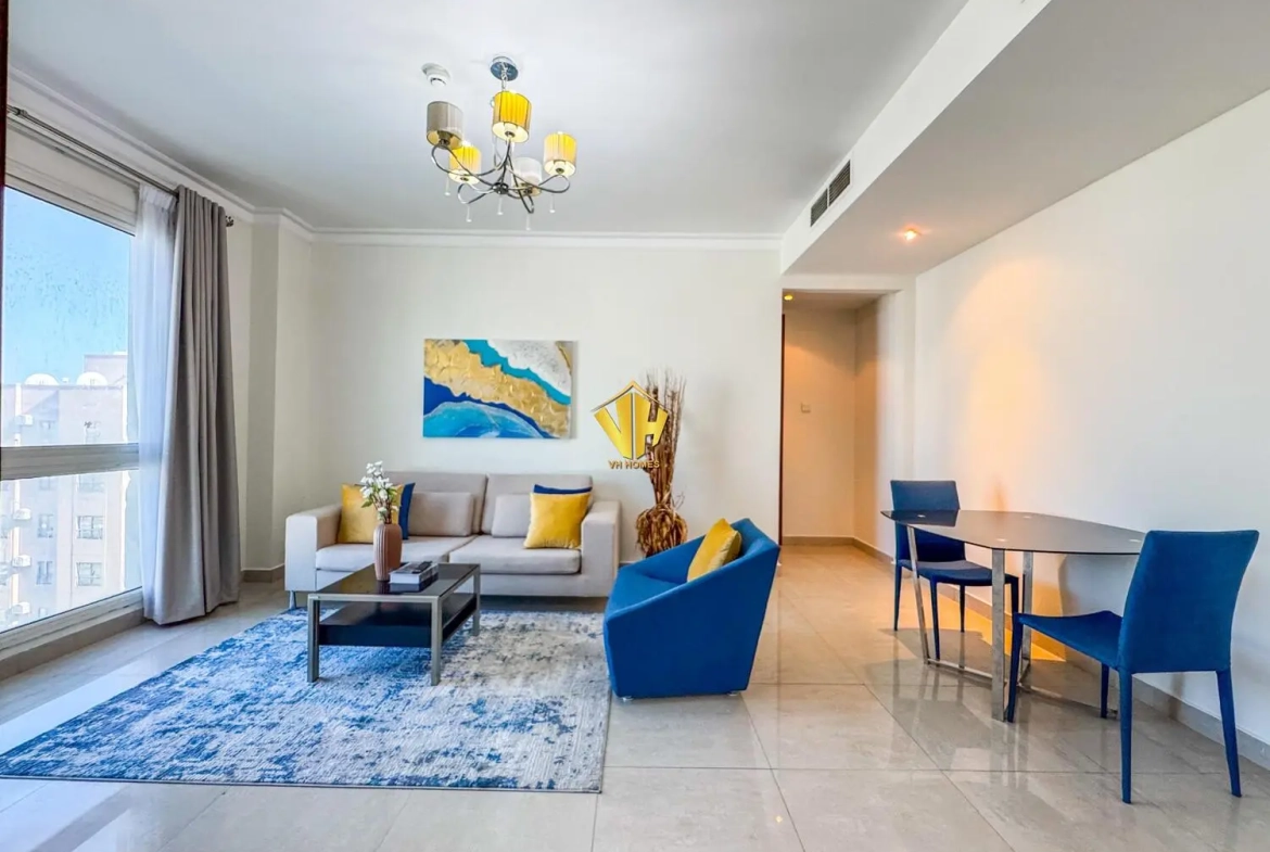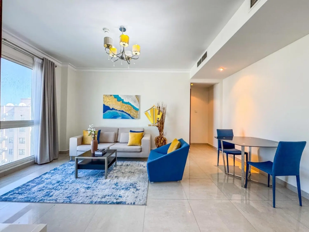 Beautiful and spacious 1 bedroom fully furnished modern apartment in a prestigious tower in Um Al Hassam very close to the British Club.