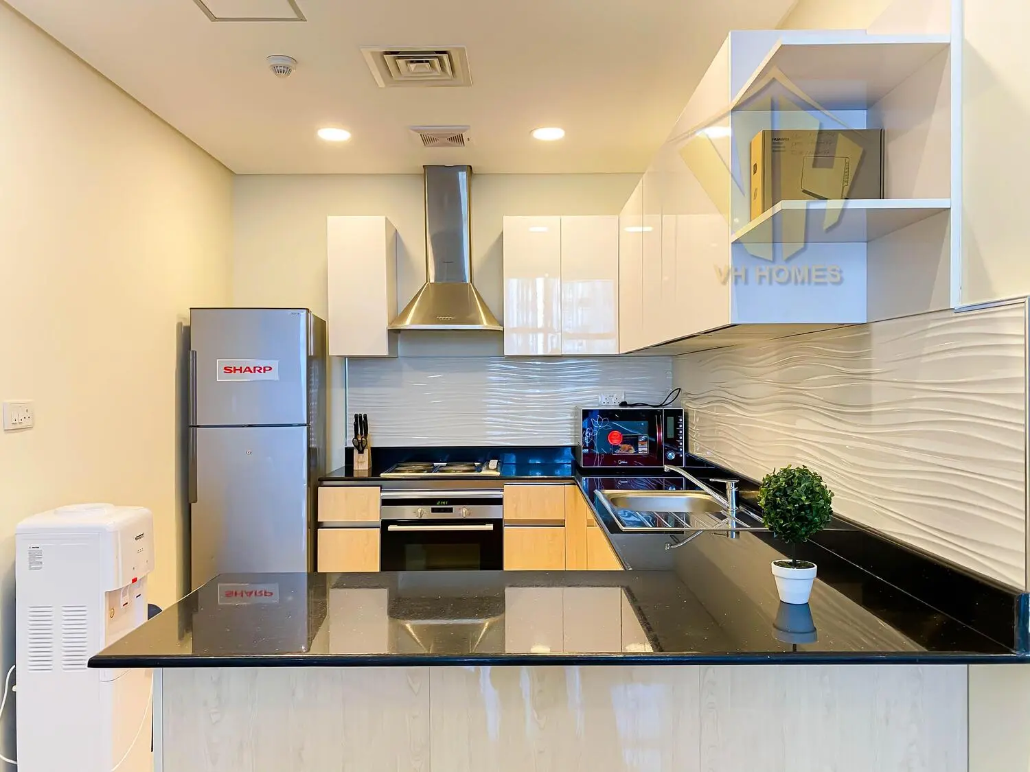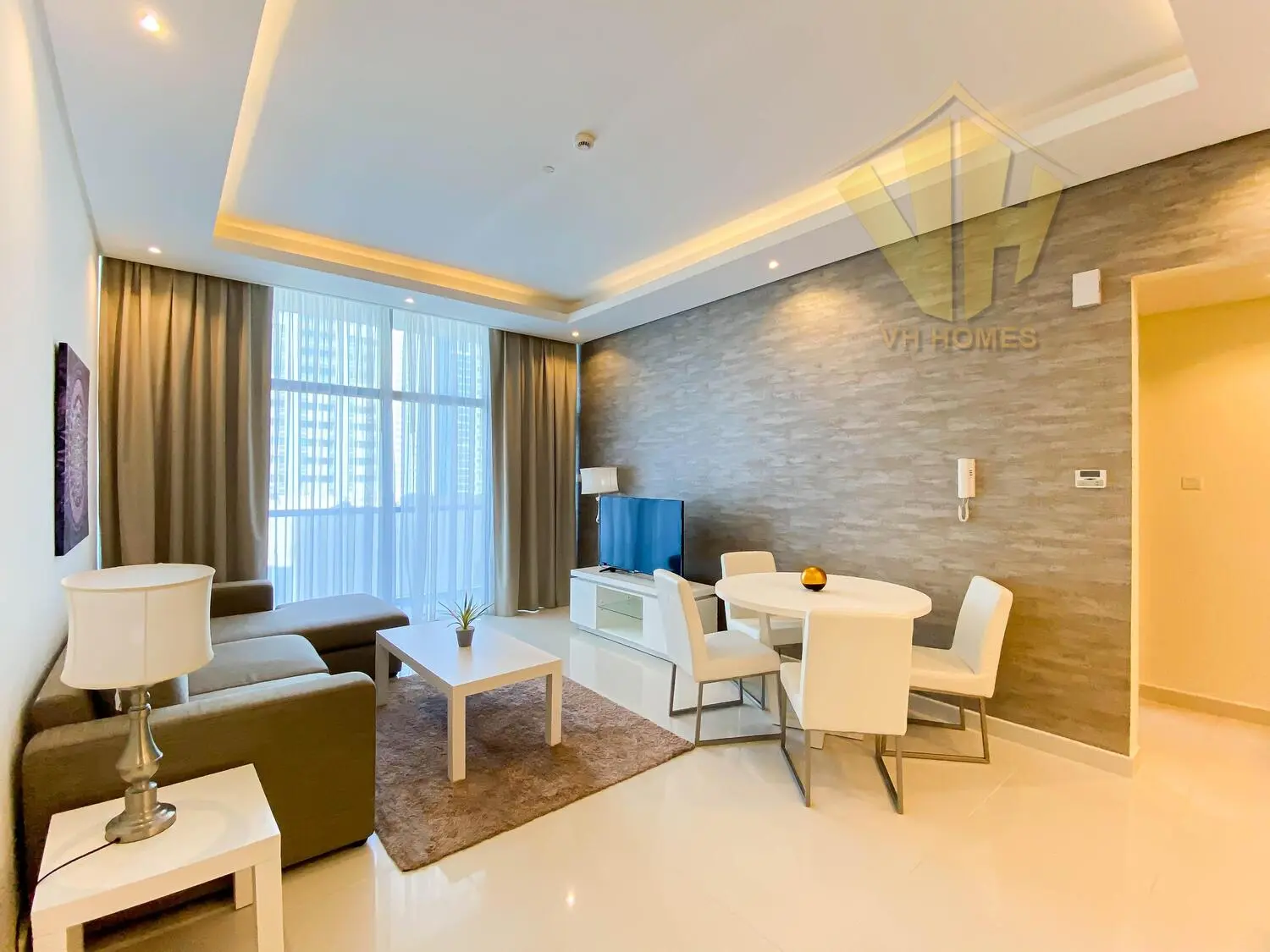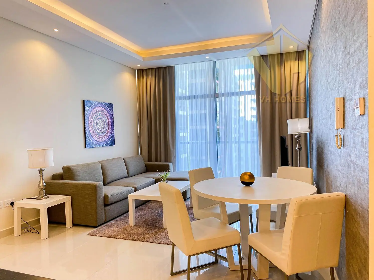 A stunning modern flat in Juffair’s lively center, with huge windows and contemporary furnishings. It is ideal for singles or couples and has one bedroom, a guest toilet, a beautiful living room with dining area, a modern fully furnished kitchen, and a balcony.