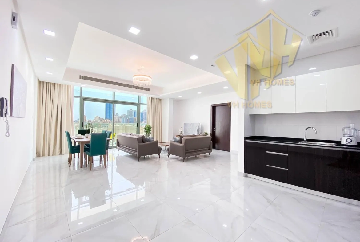 This Brand New modern one-bedroom Luxury spacious modernly furnished apartment in a prestigious tower in Juffair. This secure and safe apartment is very spacious with all modern conveniences. . It comprises of 1 bedroom with attached toilet + guest toilet, spacious living room with dining area, modern kitchen, Huge windows with lots of natural lights, Sea view…