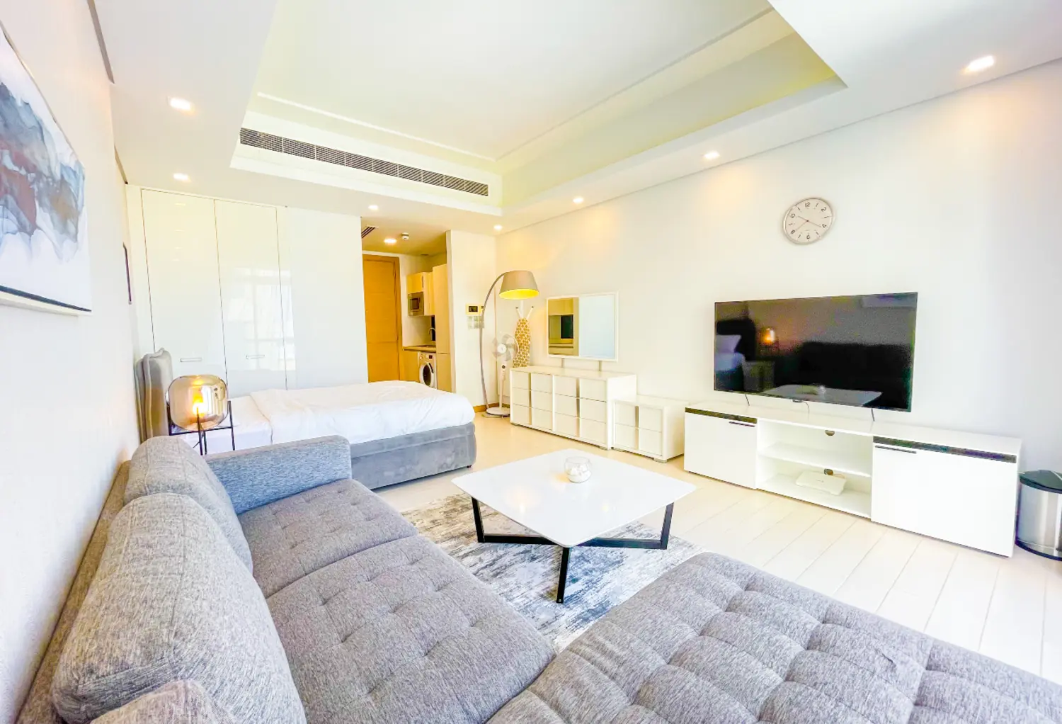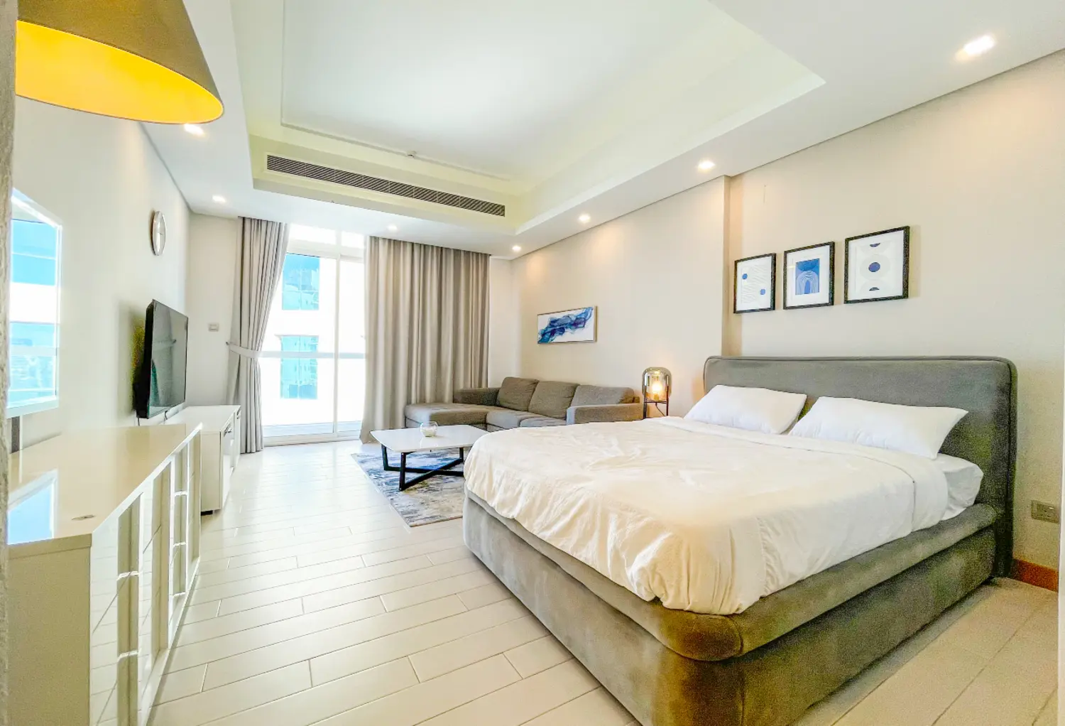 This amazing beautiful new apartment has bedroom and bathroom, a large living room with lots of natural lights, High Quality kitchen, , Grade A bathrooms, Marble floors, Amazing Decorations, with great city view..