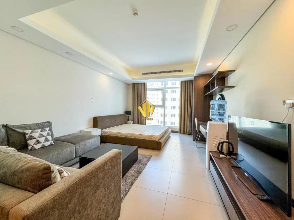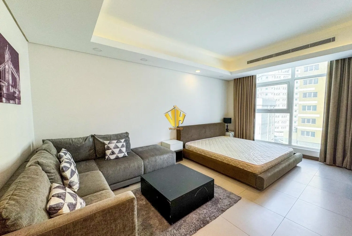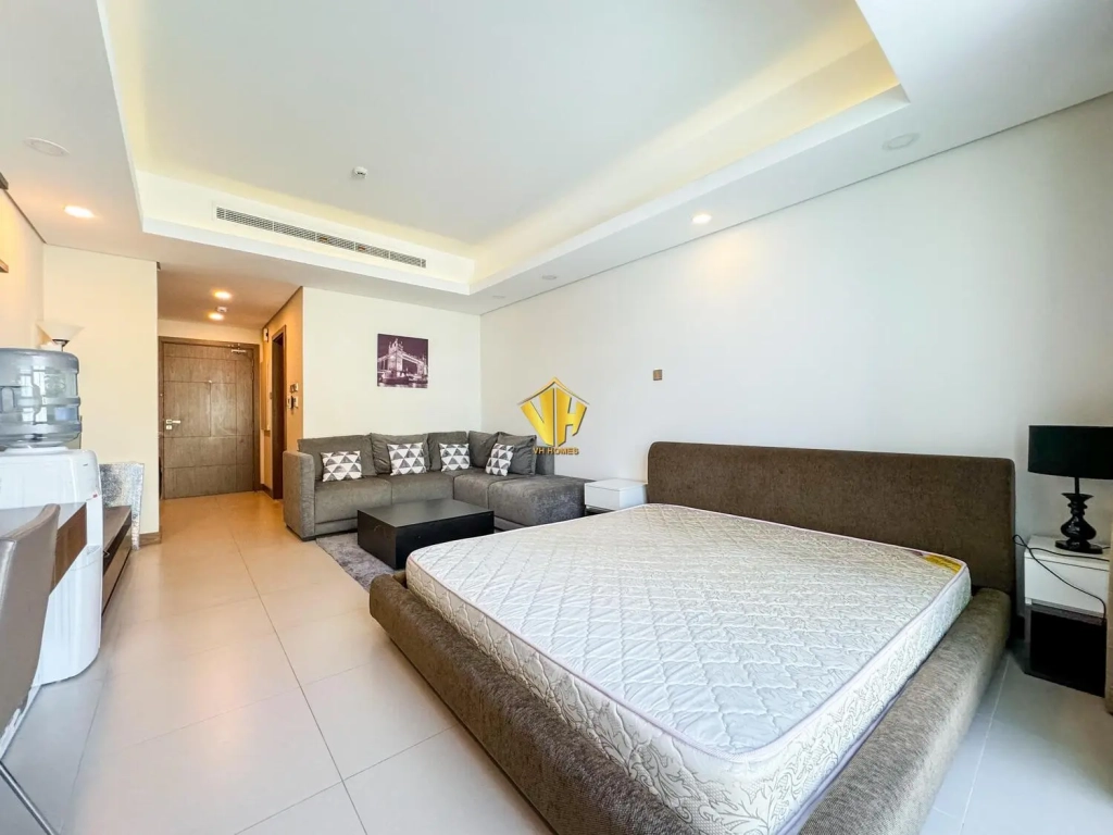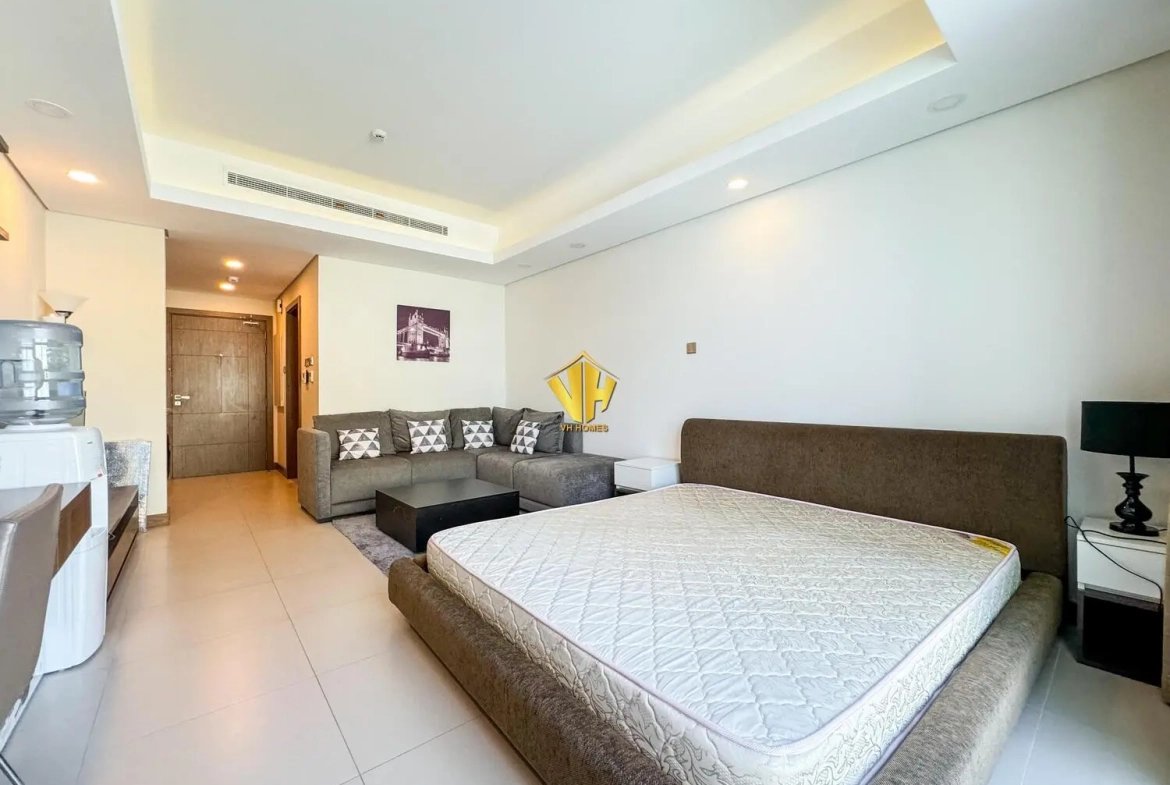 Beautiful fully furnished studio apartment in a amazing tower in Busaiteen, close to King Ahmed Hospital.
