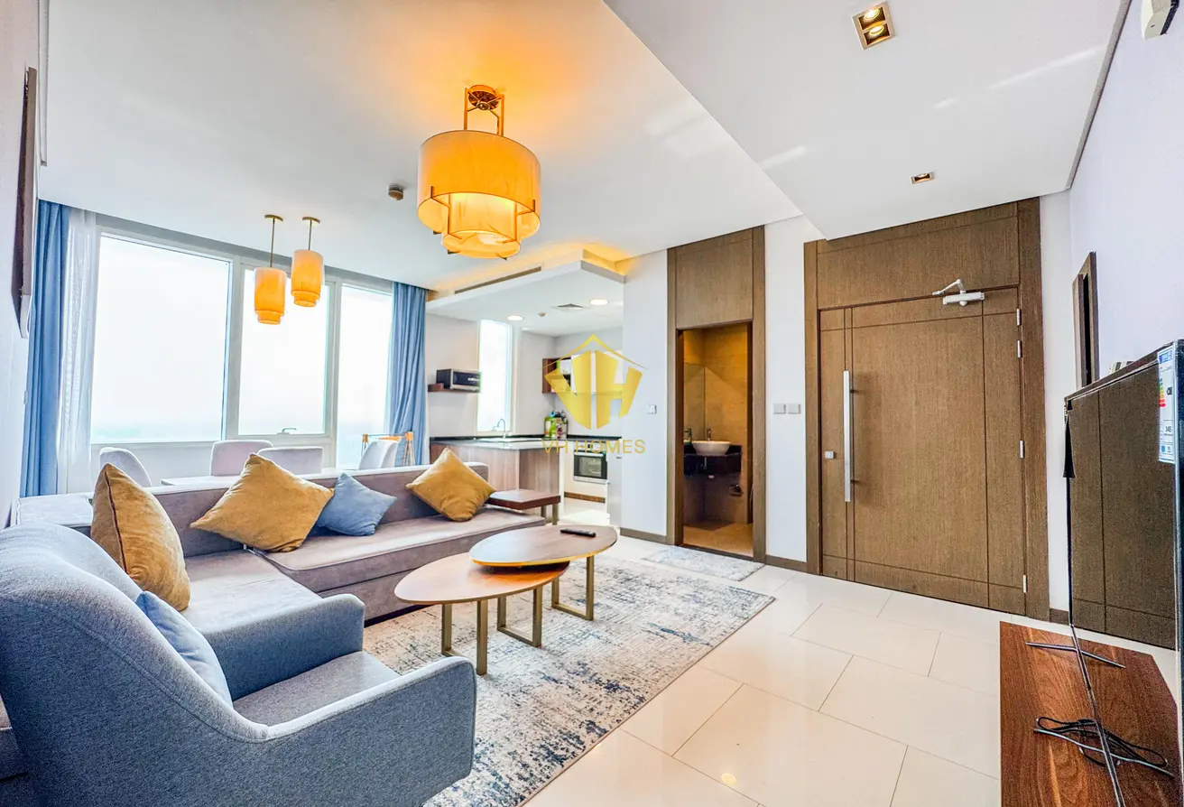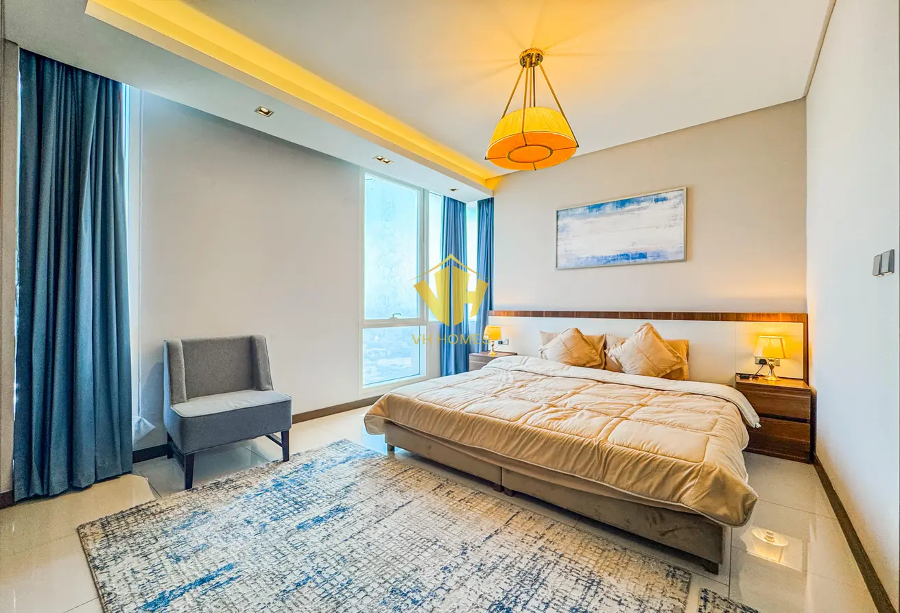 “Experience luxury living in this spacious, modernly furnished one-bedroom apartment with stunning views, located in a prestigious tower in Juffair. This secure and well-appointed home offers all the comforts and conveniences of contemporary living.”