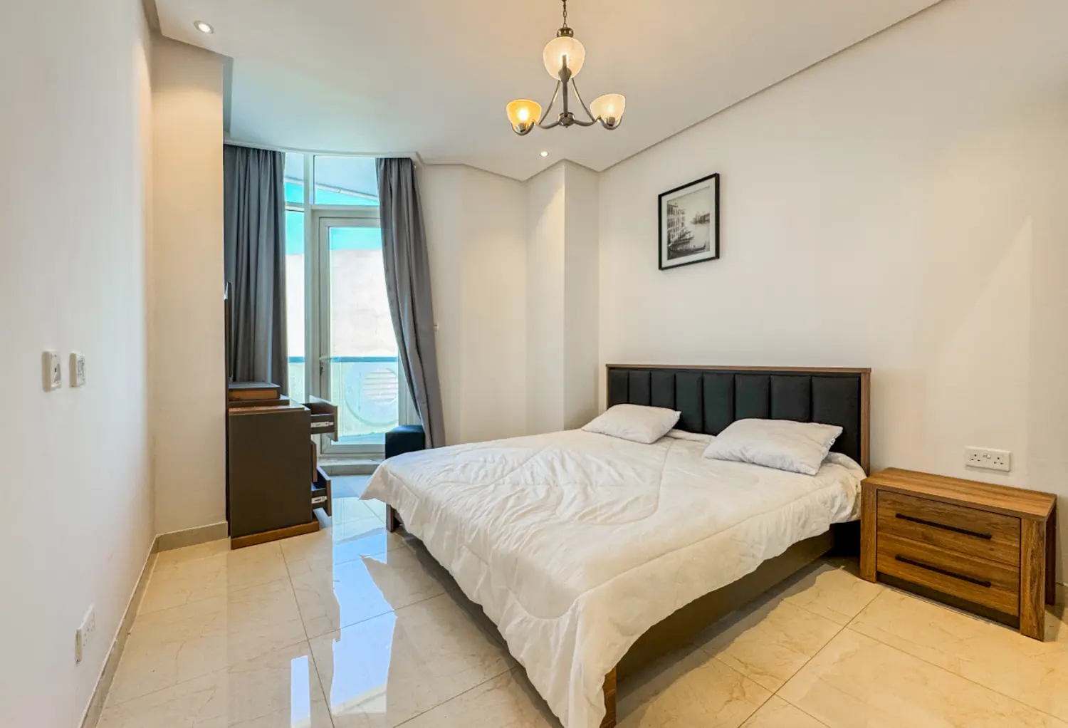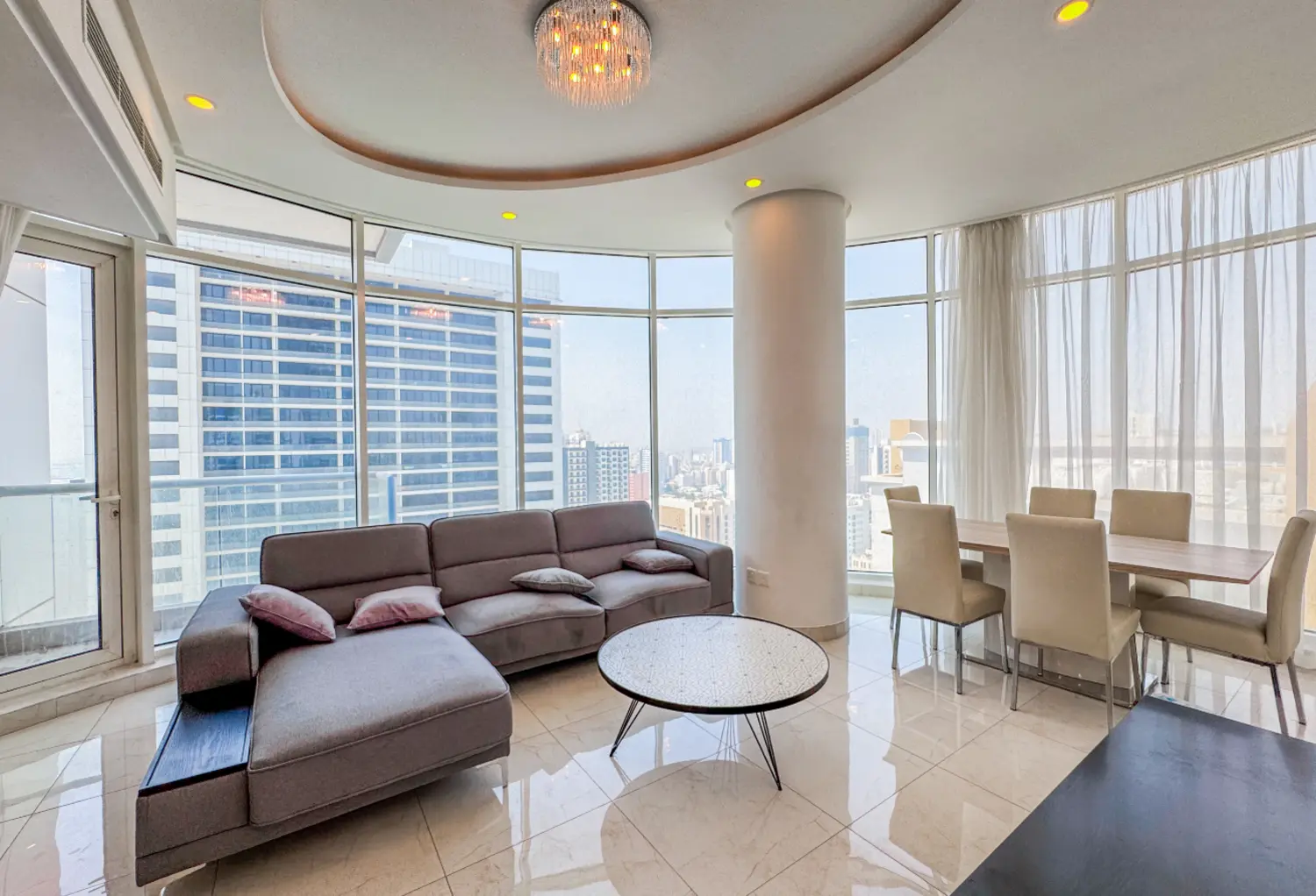 A stunning modern flat in Juffair in the lively center, with huge windows and contemporary furnishings. It is ideal for singles or couples and this apartment has a spacious bedroom with an attached toilet + a guest toilet, a beautiful living room with dining area, a modern, fully furnished kitchen, and a balcony.