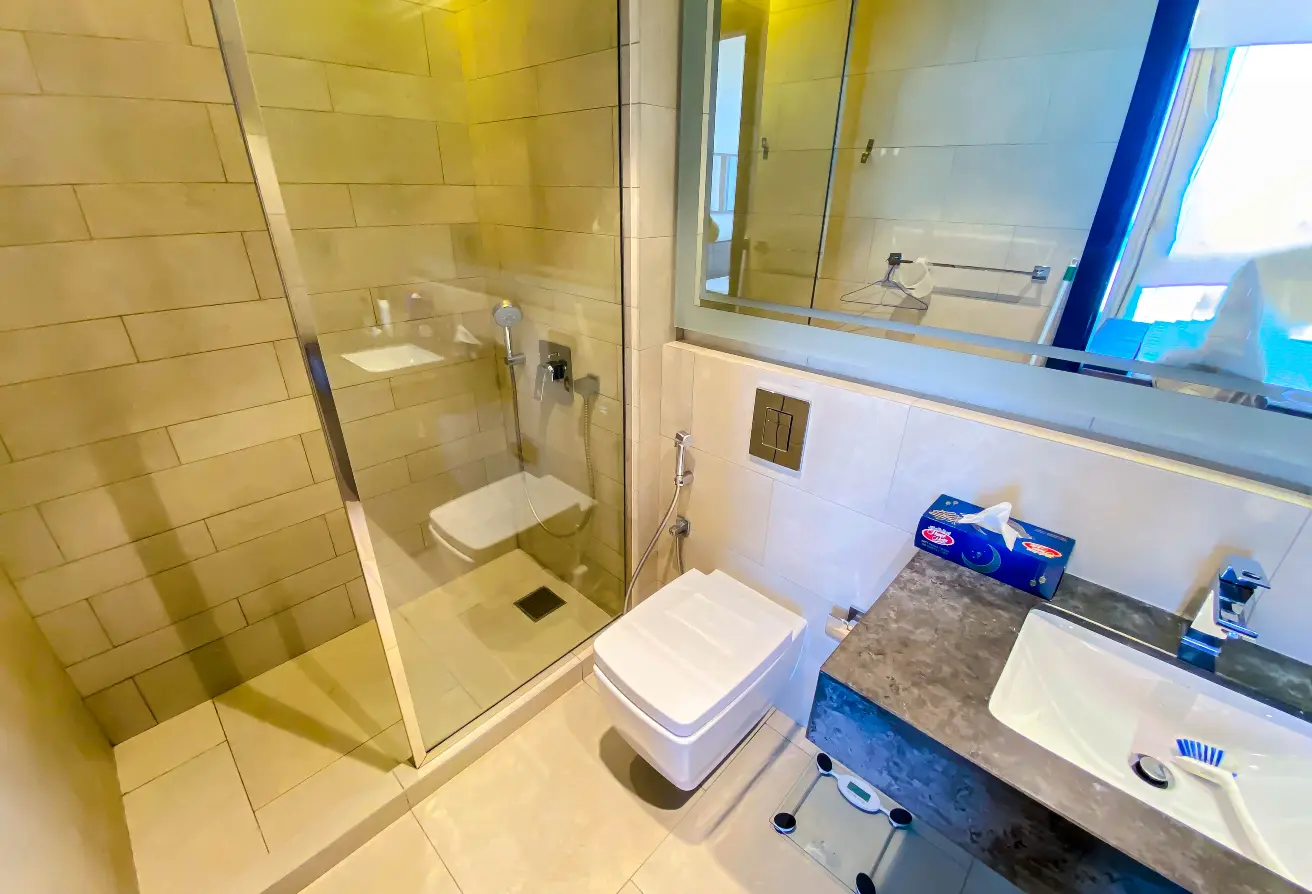 This secure and safe apartment is very spacious with all modern conveniences. It comprises of 1 bedroom with attached toilet, 1 guest toilet, modern kitchen, Huge windows with lots of natural lights, Huge balcony
