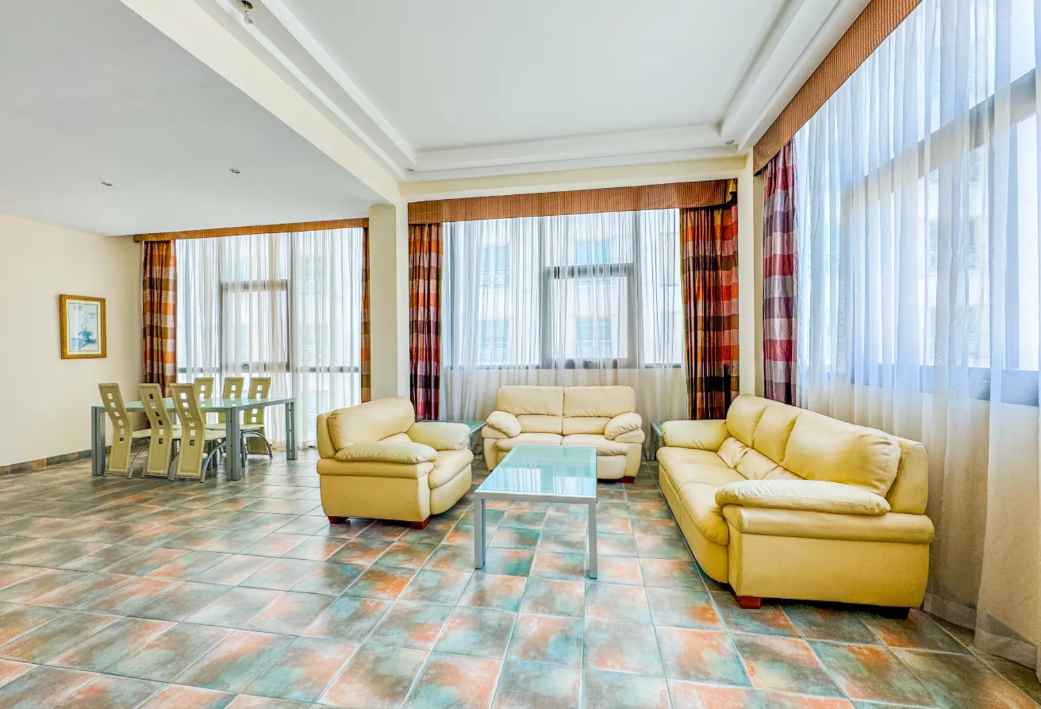 This amazing apartment is very spacious with all modern conveniences. It offers a luxurious lifestyle for all it’s tenants. It comprises of 3 bedroom 2 attached toilet + a guest toilet, spacious living room with dining area, modern kitchen, Huge windows..
